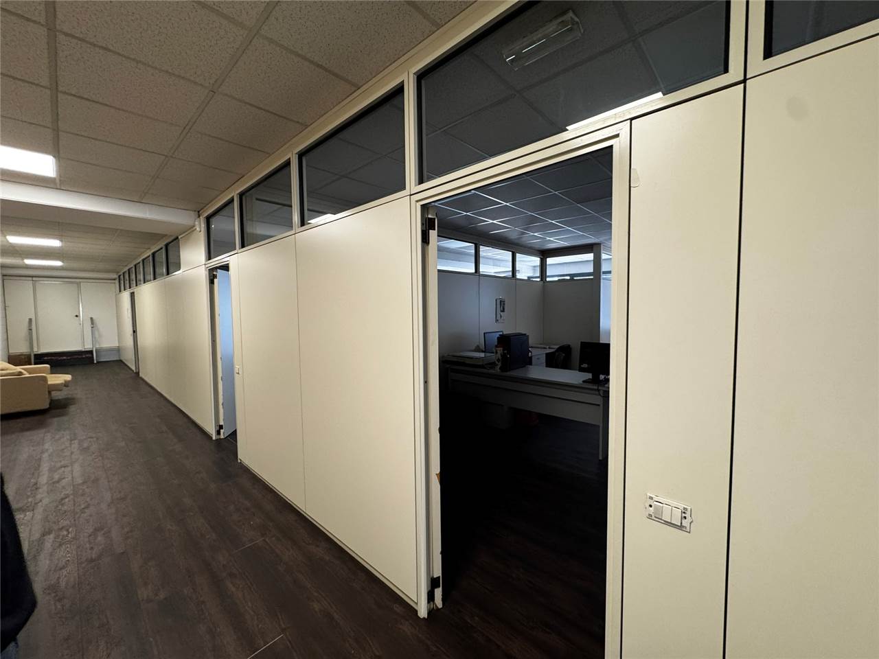 L'ufficio al primo piano ha ingresso indipendente tramite scala, ha superficie di circa 330 mq open space con divisori mobili.